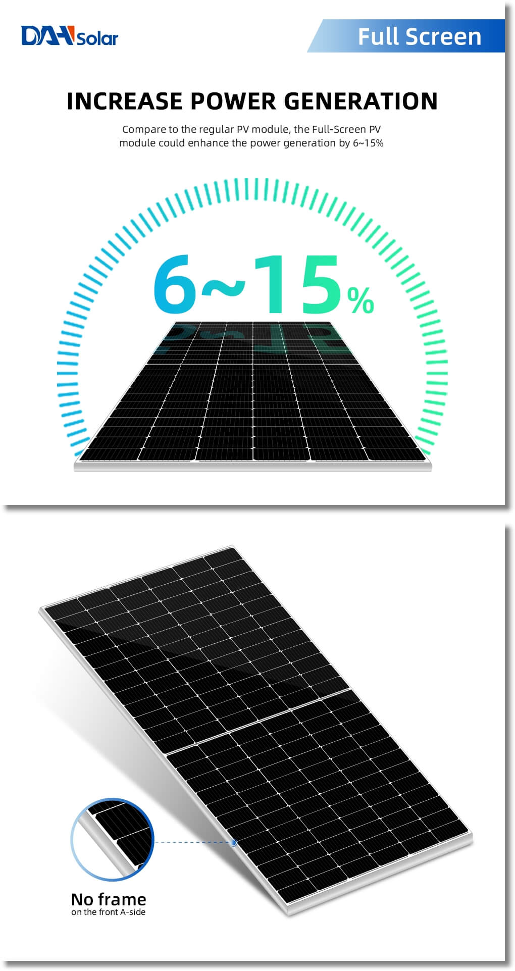Dah Solar's PV panels also incorporate a rear-side design that enhances power generation by up to 20%. The grid line transparent back sheet boosts back reflection, allowing for increased power generation efficiency, especially in situations where the backlight is present.